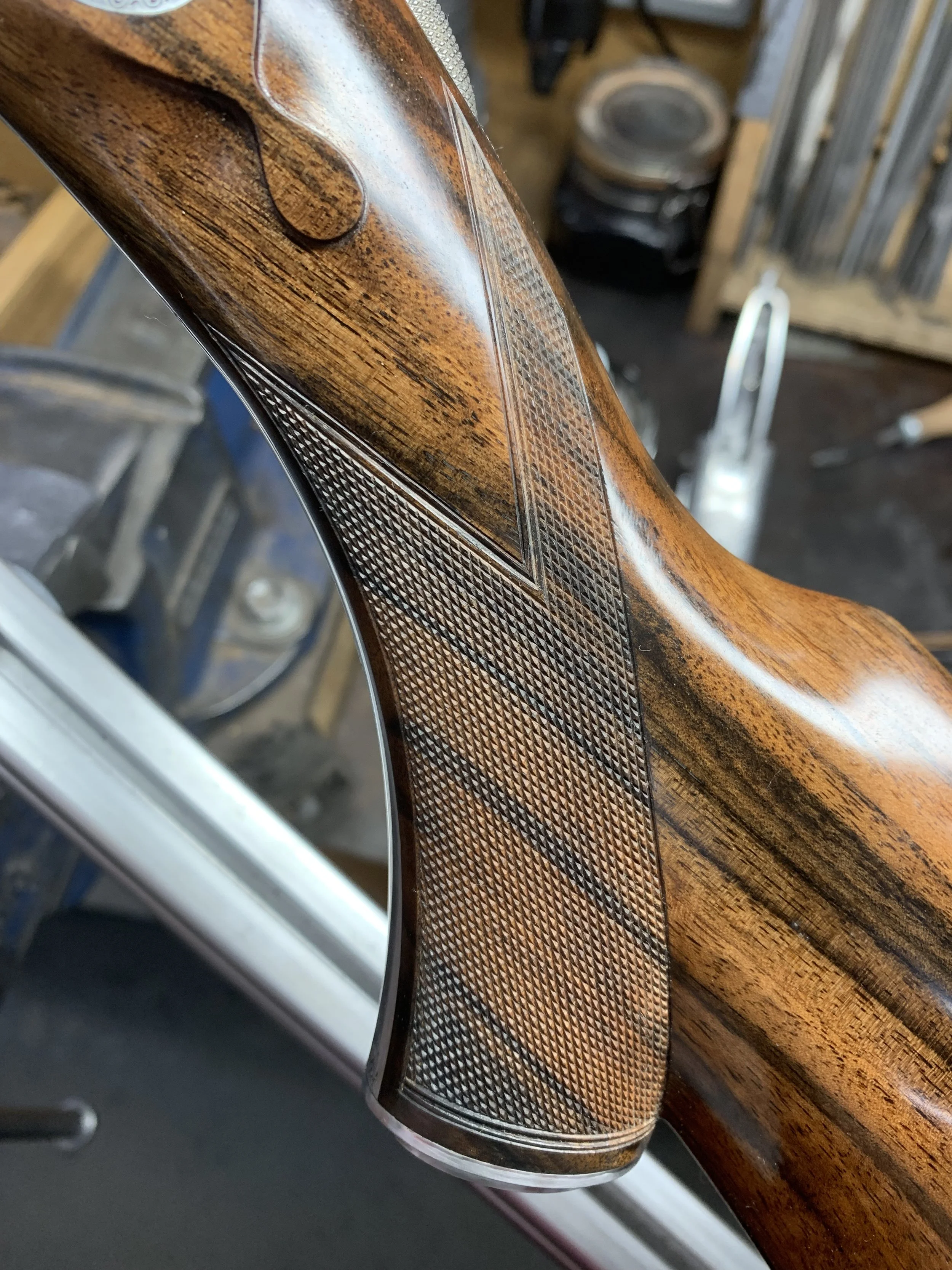 A well finished stock is one of the most important aspects to the look of a gun. We use traditional finishing techniques used by some of the best gun makers in the world such as Purdey and Holland And Holland to achieve the best finish available.
